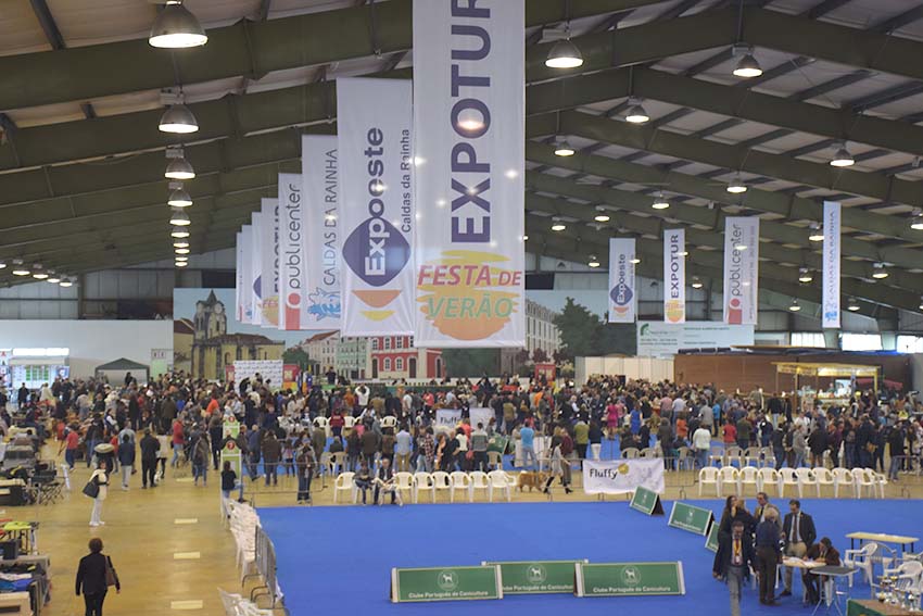 O pavilhão da Expoeste tinha logo à entrada uma zona de provas – um grande tapete azul, dividido em quatro partes e com cadeiras à volta – e outra ao fundo. Ao redor dessas ‘pistas’ estavam 25 expositores, a maioria dedicado, claro, aos caninos, com ração e gulodices, mas também acessórios para todos os gostos. Entre os expositores havia stands dedicados à gastronomia e uma seguradora que vendia seguros específicos para animais.