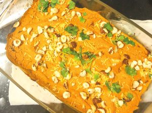 Ingredientes: uma chávena de trigo sarraceno e duas de água, sal, dois dentes de alho, cebola, uma colher de sopa de azeite, meia courgette, pimento vermelho, alho francês, cenoura ralada; Para o Hummus: grão de bico, dois dentes de alho, uma colher de sopa de tahini, sumo de meio limão e sal