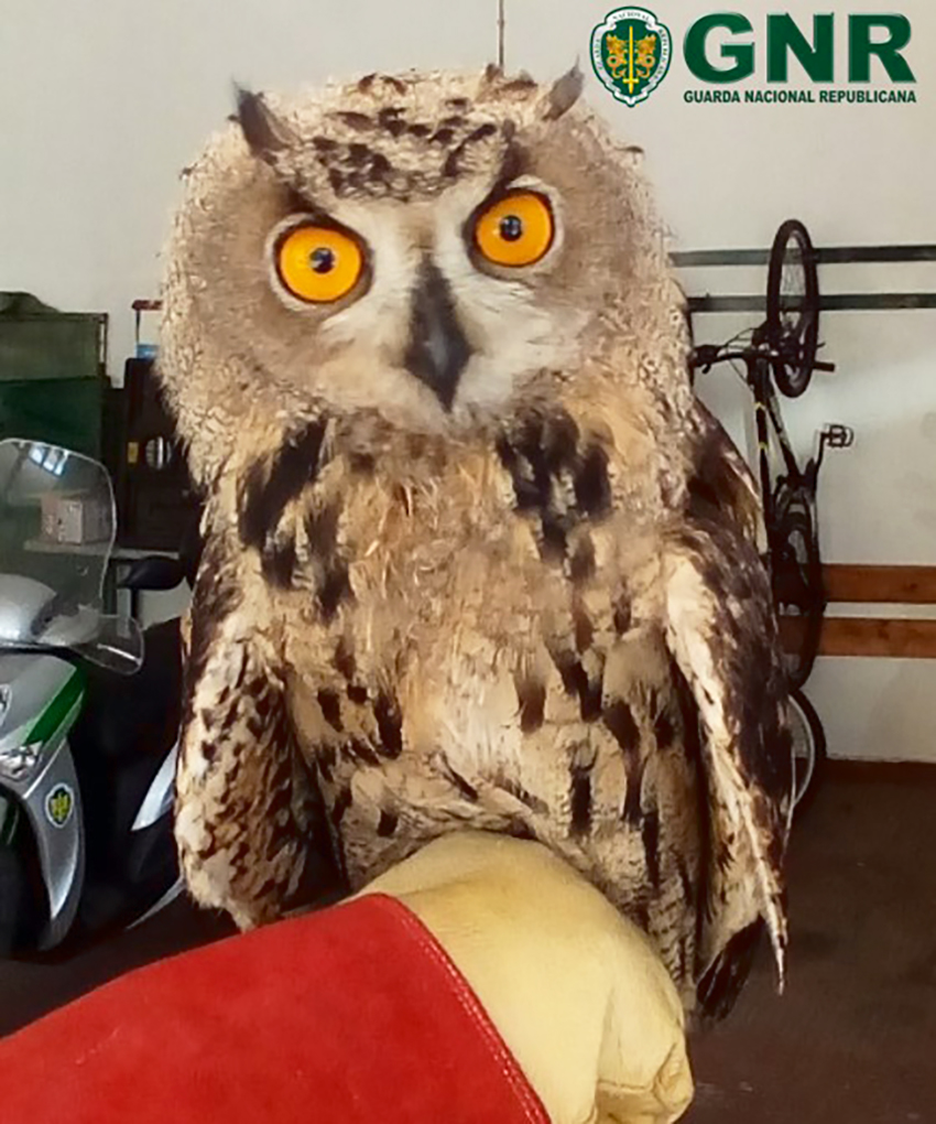 Foi no dia 29 de Junho que a força militar foi alertada por populares para a presença de um bufo real (Bubo bubo) no interior de um armazém na localidade das Caldas da Rainha.