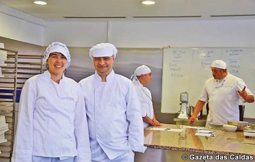 O interesse pela panificação é antigo, mas as actividades profissionais de ambos foram adiando a sua concretização, até Janeiro deste ano, altura em que viram um anúncio sobre a abertura de um curso de padaria no pólo caldense da Escola de Hotelaria e Turismo do Oeste (EHTO). O casal há muito que já fazia pães em casa, até porque Ana Belém é vegetariana e procuravam ambos fazer uma alimentação o mais saudável possível. Entretanto, com o nascimento da filha e a sua intolerância à proteína do leite de vaca, ainda passaram a dar mais atenção à alimentação e, entre ela, ao consumo de pão saudável. As tentativas que já tinham feito para dar uma verdadeira concretização a este hobby, com mais informação e técnica, saíram-lhes goradas porque os cursos existentes eram para desempregados ou pessoas em fase de reconversão profissional, pelo que ficavam sempre sem vaga. Ainda tentaram aprender em algumas padarias. “Inicialmente havia uma grande abertura, mas quando as pessoas se apercebiam que estávamos interessados e queríamos aprender mais, as portas começavam-se a fechar”, recorda Luís Rosa. A notícia da abertura do curso levou-os a suspender a actividade profissional, sobretudo Luís Rosa que trabalhava na Noruega, durante seis meses, para regressar à terra natal e aprender mais sobre padaria. Desde meados de Março que andam, literalmente, a pôr a mão na massa, e dizem que está a correr bem, embora seja tudo novidade. “Os nossos colegas já são todos panificadores e pessoas com muita experiência nas áreas da pastelaria e padaria, mas para nós quase tudo é novidade e fazer pão não é uma arte tão simples como se possa imaginar”, diz Luís Rosa que está sempre atento aos segredos e detalhes que fazem um bom padeiro. O formando revela ainda que este é um curso “muito completo”, embora no seu caso, pela falta de experiência, pense que “precisaríamos de mais horas de área prática”. Já tiveram um módulo de padaria regional portuguesa e, na semana passada, na sala de formação de padaria estava tudo a postos para uma aula sobre como fazer pão bijou, uma especialidade do norte do país.