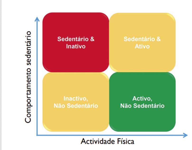 Por outro lado, uma pessoa sedentária é alguém que passa grande parte do tempo do seu dia deitado, sentado ou reclinado, enquanto acordado. Um adulto sedentário tem um risco aumentado de mortalidade prematura, de mortalidade por doença cardiovascular e oncológica, além de maior probabilidade de desenvolver doenças cardiovasculares, oncológicas e diabetes.