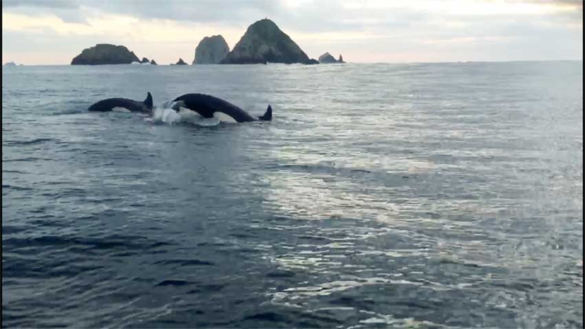 Durante uma hora, um grupo de 20 orcas foi avistado junto aos Farilhões, um fenómeno que é raro na região