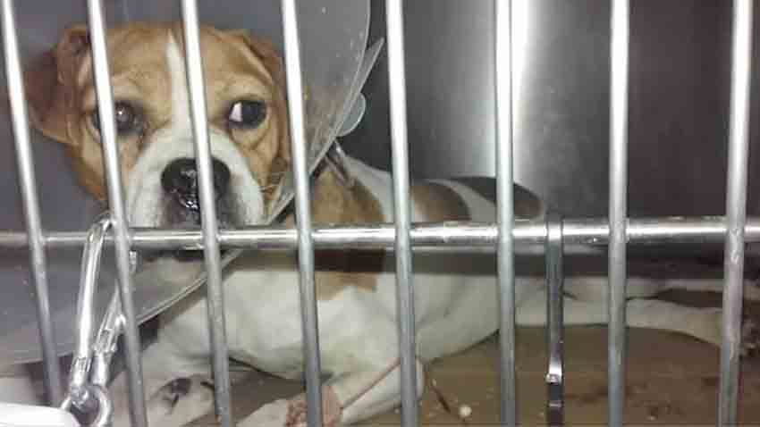 Cadela encontrada atropelada na estrada entre as Caldas e o Bairro Sra da Luz, alguém reconhece? facebook.com/carla.santos.944 e facebook.com/cristiana.fonseca.31