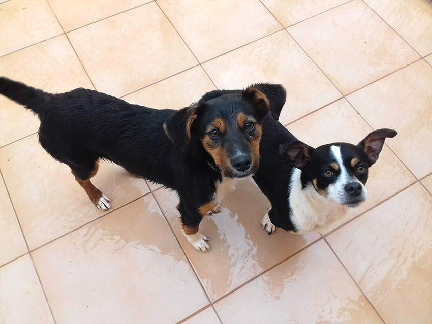 Estes dois amiguinhos foram os últimos a entrar, tiveram de ficar juntos e dão-se bem. Ele é o Faísca é um cão minorquinhas, com 4 kg, calminho. Ela é uma cadelinha talvez com uns 6/7 meses que irá ficar com porte médio e é uma atrevida. Chama-se Mafalda, Mafaldinha, pois ainda é bebé. Brincam, brincam, brincam e a Mafaldinha não se cansa!! Ambos serão entregues esterilizados! Venham visitá-los!