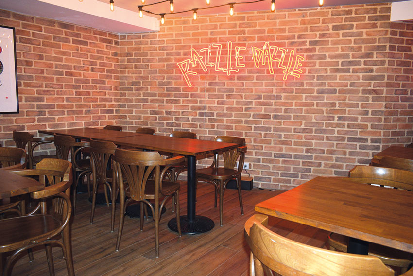 Verifica-se também que a modernidade se alia à tradição. Por um lado, são luzes néon que delineiam o nome do restaurante, uma espécie de “tcharan!” em português (dazzle é algo que causa deslumbramento). Por outro, tudo é cozinhado na hora num forno 100% a lenha, construído de raiz e aceso todo o dia, não havendo microondas nem fogão elétrico. E as paredes foram refeitas com tijolo “burro”, como antigamente.