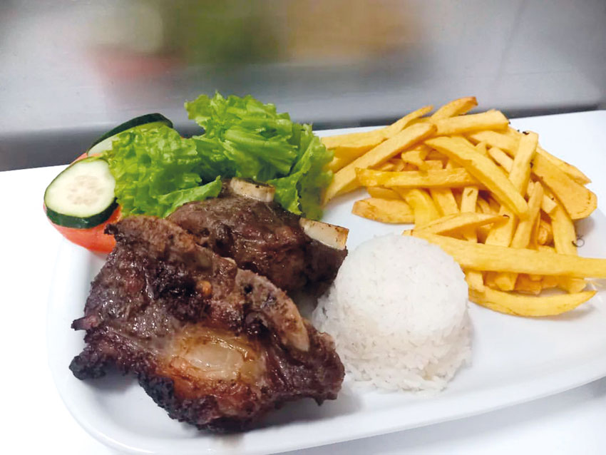 Vaca tonada, carne de Sol, alcatra, picanha tropical, tábua mista, mas também os célebres pratos tradicionais portugueses, como o bitoque, a alheira e a grelhada mista, são algumas das iguarias que o espaço confeciona, a par dos petiscos, como os torresmos, a mandioca, a calabresa, as moelas e o choco frito, que também são servidos entre refeições. Sábado é o dia da feijoada.